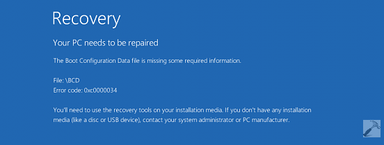 Windows 8 / Windows 10 - Error "The Boot Configuration Data File is missing some required information"